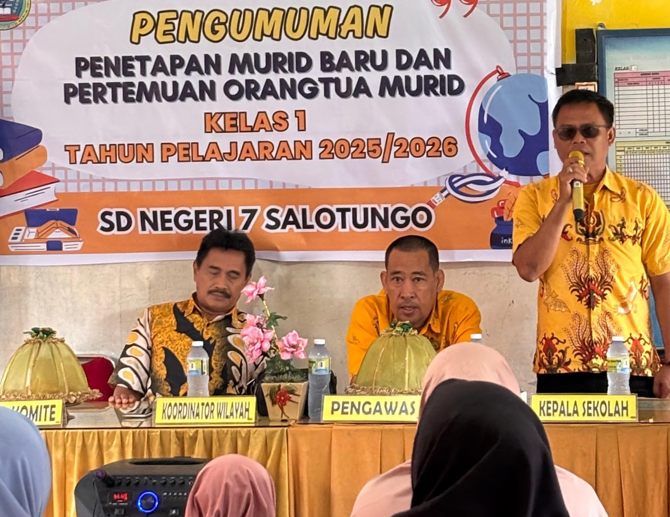 Kepala SDN 7 Salotungo, Abdul Asis, S.Pd.I, menyampaikan apresiasi atas kepercayaan masyarakat. Ia menegaskan bahwa sekolah dan keluarga adalah dua tiang utama dalam membangun karakter serta akademik anak.
