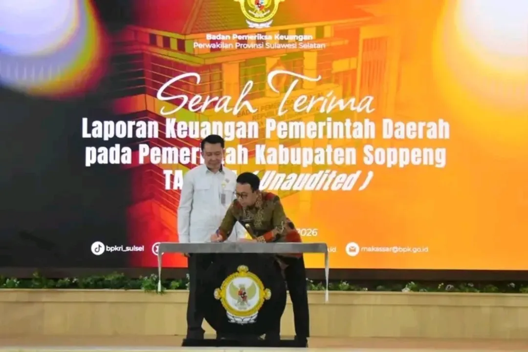 MAKASSAR, Warta72.com β€” Pemerintah Kabupaten Soppeng kembali menunjukkan komitmennya terhadap tata kelola keuangan yang transparan dan akuntabel dengan menyerahkan Laporan Keuangan Pemerintah Daerah (LKPD) Unaudited Tahun Anggaran 2025 kepada Badan Pemeriksa Keuangan (BPK) RI Perwakilan Provinsi Sulawesi Selatan, Senin (30/3/2026).
